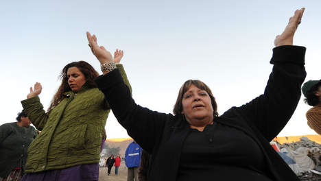 COPIAPO - Terwijl 33 mijnwerkers nog voor een lange periode vastzitten in de diepe San Jose-mijn, lopen de spanningen bovengronds op. Echtgenotes en minnaressen van de mannen vliegen er elkaar in de haren, met als inzet schadeclaims voor de vastzittende kompels.