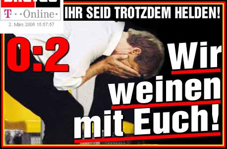 @Cyberjunk: Klinsmann, de televisie en anderen vind ik wel meevallen. 'Het Volk' daarentegen begon alweer de ouderwetse arrogante trekjes te vertonen. Daarom juichte ik ook voor Italie!