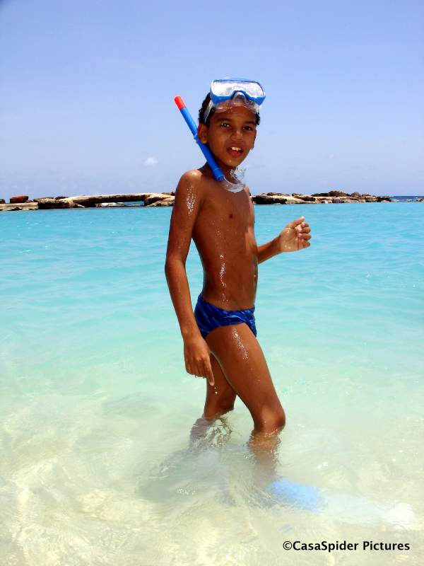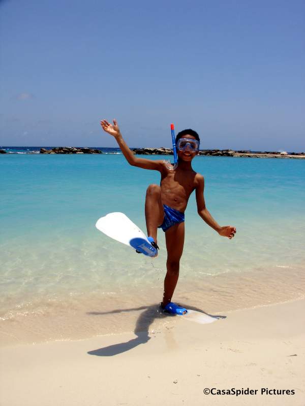 De mok koffie is op. Zaterdag gingen Luchiano (9) en ik naar Mambo Beach om zijn nieuwe snorkelset bestaande uit een duikbril, een snorkel en twee flippers uit te proberen. Hij had al eerder een duikbril maar dat was geen succes, goedkoop is duurkoop.