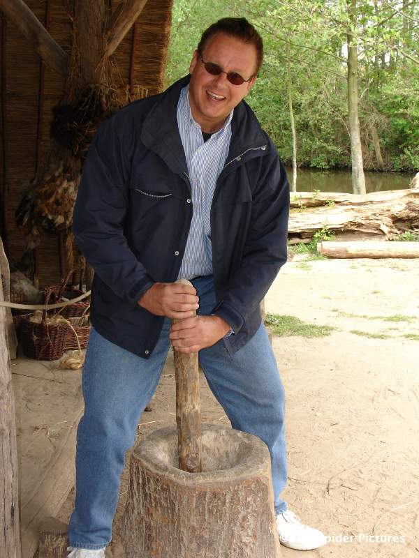 We hadden maar een uur de tijd en begonnen met de Prehistorie. Diana (11 maanden) voelde zich thuis in dit tijdperk en op de achtergrond kuiert een prehistorische dame weg. We probeerden wat gebruiksvoorwerpen uit, zelf heb ik nog iets gemalen maar vraag me niet wat. Lucy was tevreden met haar zelfgemaakte soep.