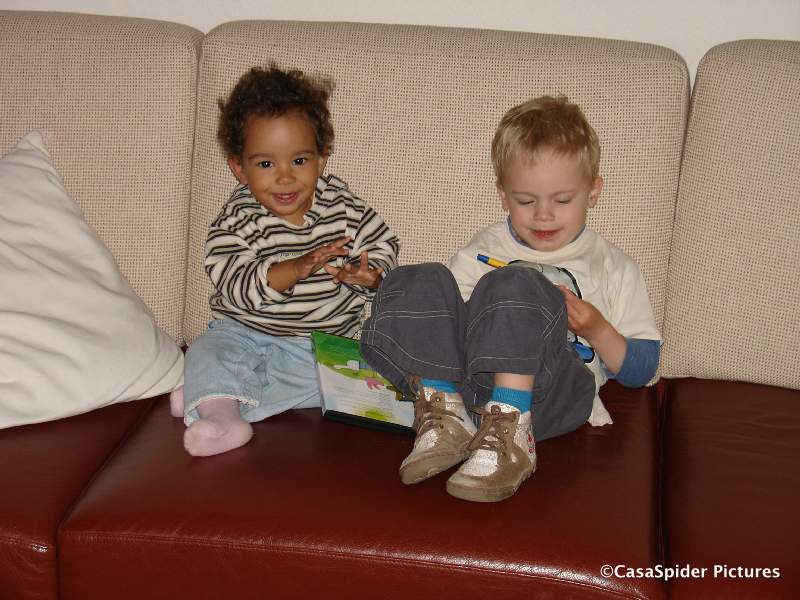 Precies om vijf uur stapten wij de 21e eeuw weer binnen. Tom (2), de zoon van zus Pascale en zwager Luc, was op bezoek en dat was een leuk speelkameraadje voor Diana. CasasPa had zich flink uitgesloofd in de keuken. Op het menu stonden overheerlijke verse asperges (AA-kwaliteit). Na het eten werd de avond als gebruikelijk sportief afgesloten met een paar partijen boerenbridge.