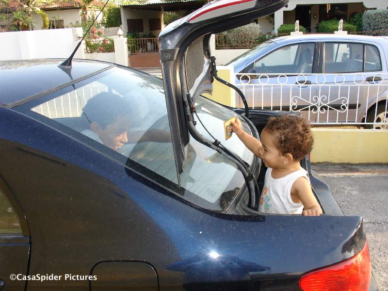 @Angel: In de wet staat niet vermeld dat kinderen in de kofferbak in een kinderzitje vervoerd moeten worden. Sinds de diefstal van de donkerblauwe Toyota Corolla met Moon-/Sunroof staat de auto binnen. Daarvoor moest wel eerst een plantje omgehakt worden...