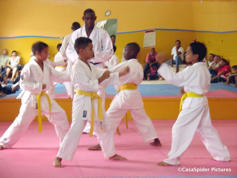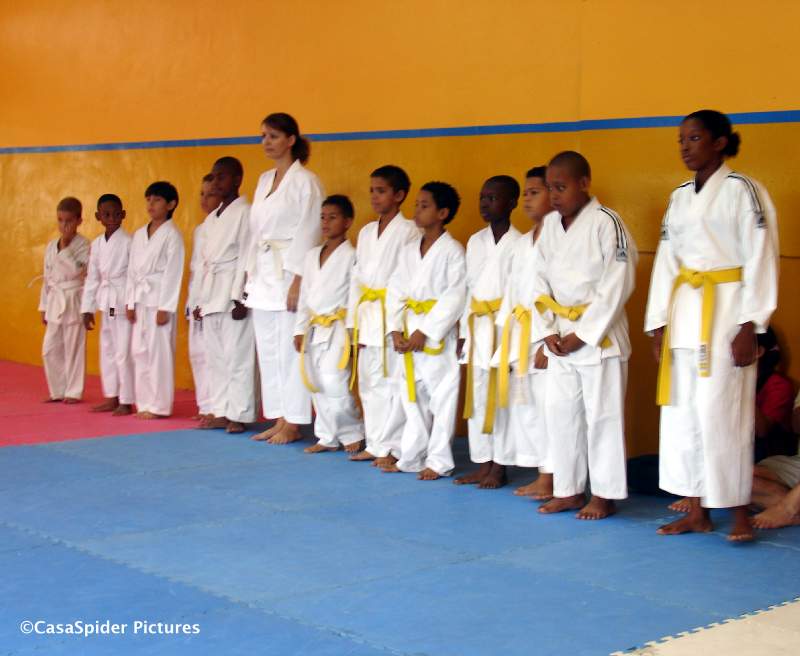 Het moment van de waarheid brak aan. De zes dragers van de witte band stonden op een rij. Ze zijn allemaal geslaagd voor de gele band en Gerard was de beste. Sensei Anthony legde uit dat de eisen van de school hoog zijn, maar dat de gele band gezien dient te worden als een stimulans om door te gaan en vooral ook beter te worden.
