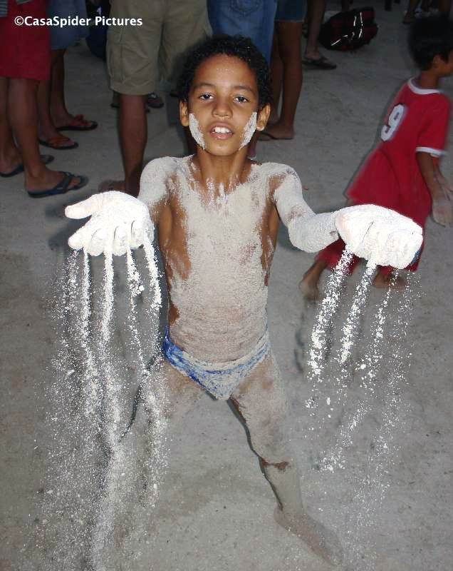 Via Dolfijn FM hobbelden we door naar het Happy Hour van Wet&Wild. Luchiano (9) vermaakte zich met Arwin en Gerard. De kinderen probeerden zich in een soort van zandmannetjes te transformeren. Bij de invallende duisternis ziet het er tamelijk overtuigend uit. Het geeft wel veel troep in de auto.