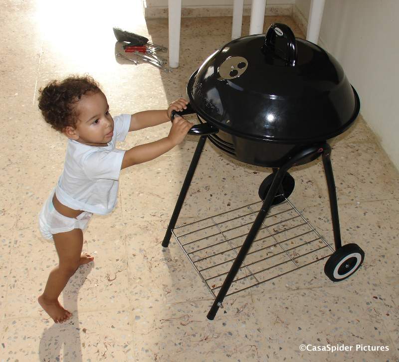 @Giensie: Dank voor de bezorgdheid, maar dat is in dit geval niet nodig. Een BBQ gloeit alleen maar, er brandt verder niets. Het aansteken hebben Lucy en ik natuurlijk gedaan...
