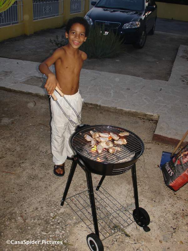 Twaalf jaar op Curacao en nooit een barbecue gehad, een barbecue in de zin van het apparaat wel te verstaan. Het is gewoon ongelofelijk. Als er ergens een barbecue in de zin van vlees eten is zijn het altijd dezelfden die achter het apparaat gaan staan om het vlees te bereiden. Mij heeft het nooit zo aangetrokken en alleen het aansteken van de kolen leek al een onoverkomelijk probleem.