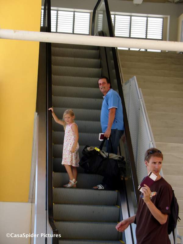 Afscheid nemen is nooit leuk, zeker niet als men gedurende tien dagen intensief met elkaar is opgetrokken. Dat geldt voor Piet en mij maar ook voor Emmie en Luchiano. Toch gingen we nog even zitten op een terrasje, een van de grote verbeteringen van de nieuwe luchthaven. Om tien over vier passeerden ze de eerste controle en namen de roltrap naar boven. Een beetje weird om te zeggen: "Tot over een week of zes!"