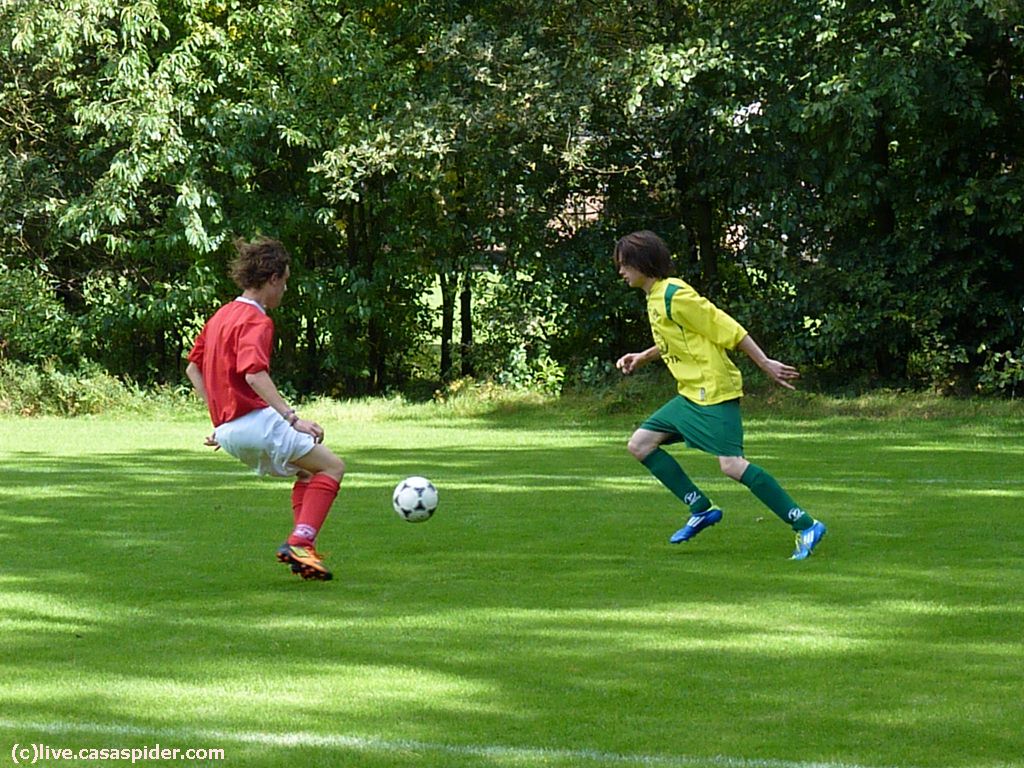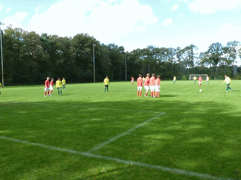 Helaas moesten we ongeveer tien kilometer lopen alvorens we bij het speelterrein aankwamen. De tong hing ons op de schoenen. Na een korte doch duidelijke uitleg werden we nogmaals opgesplitst, nu in een blauw en een rood team. Ik zat bij het blauwe.