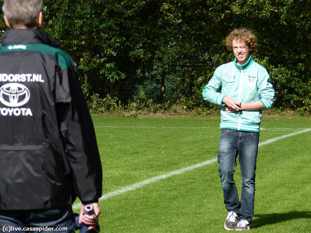 We werden ontvangen in een grote zaal en de eerste verrassing was dat we allemaal een mooi blauwe Brabant Water-Polo (de trui, niet de Volkswagen) kregen. Gezien het verschrikkelijke weer van een dag eerder en diezelfde ochtend wisten velen even niet wat te doen, hem over de gewone kleren aantrekken of iets uit doen. Immers, het zonnetje was flink aan het doorbreken.