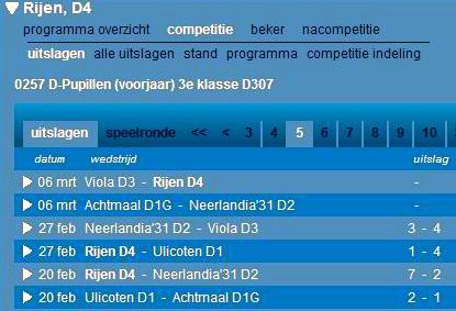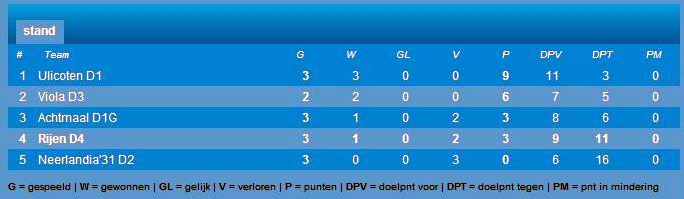 Scoreverloop Dongen C6 - Rijen C4 4-4: