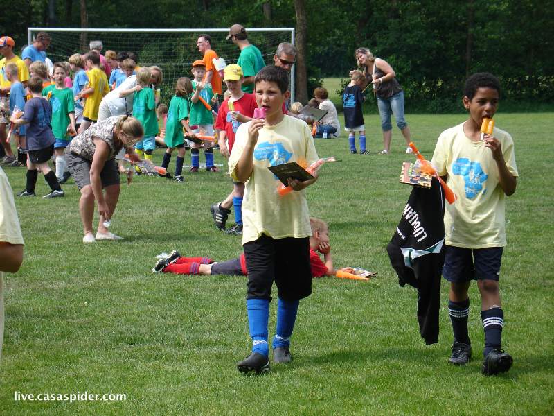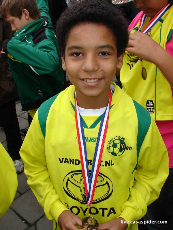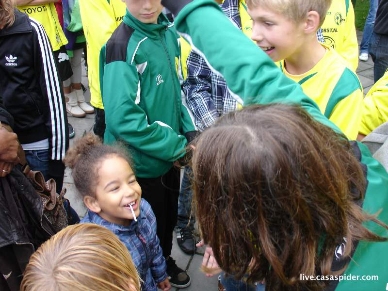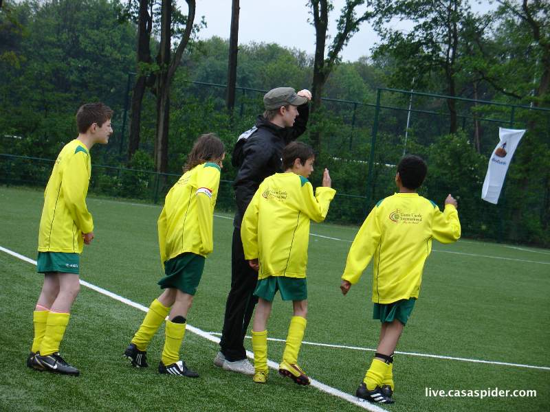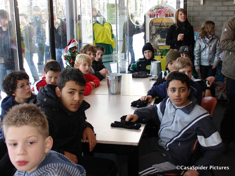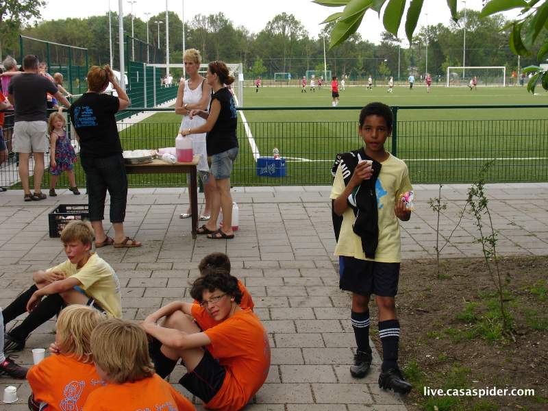 Hoe dan ook, na de ontluisterende afgang van vrijdagavond tegen onze eigen C5 treedt Rijen C4 zaterdagochtend aan tegen Dongen C6. Zit er wel voldoende karakter in de jongens? De wedstrijd begint tien minuten later omdat de scheidsrechter niet komt opdagen. Dat geeft mij mooi tijd voor een tweetal rijtjesfoto's: een algemene en een Turks getinte. O ja, Luchiano (013) heeft twee extra supporters in de personen van Lucy en Diana (4) die moedig het regenachtige weer trotseren.