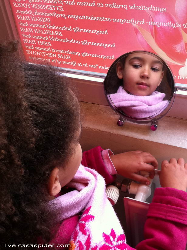 Inmiddels begon Lucy een beetje in de war te raken aangaande haar locuras aangezien ik de twijfelachtige eer had daarin steeds meer de hoofdrol te mogen spelen. CasaSpider op een paddenstoel, embarrassing! Gelukkig was er zo nu en dan wat afleiding in de vorm van levende sprookjesfiguren, zoals de verrukkellijke Roodkapje. Toen ik even op een bankje zat om een appeltje te eten kwamen er twee sprookjesfiguren op mij af: "Oei-oei, een appel. Wat gevaarlijk! Wie heeft die aan u gegeven?"